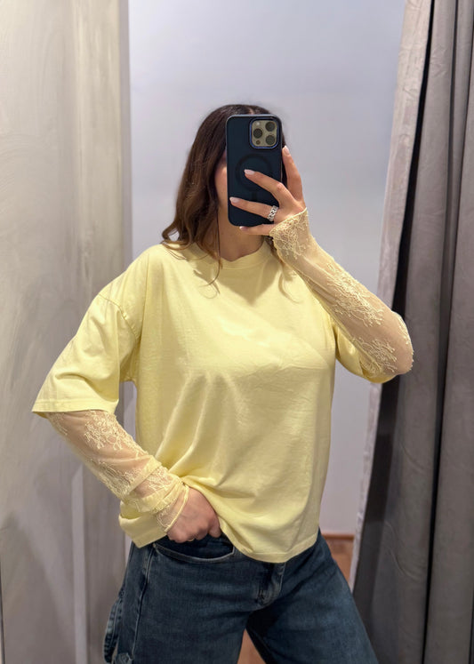 T-shirt Manica Pizzo Gialla - SUSY MIX