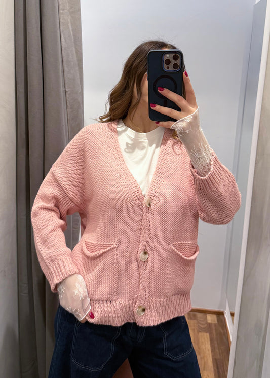 Cardigan Over con Tasche Rosa - SUSY MIX