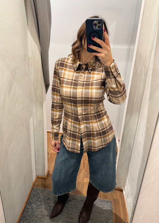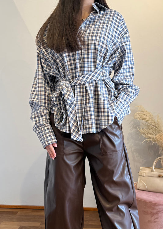 Camicia Check con Fiocco Azzurra/Marrone - LUMINA