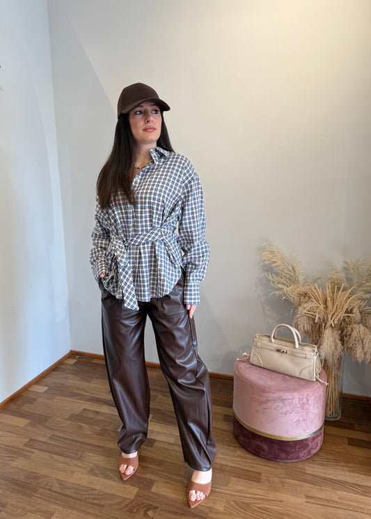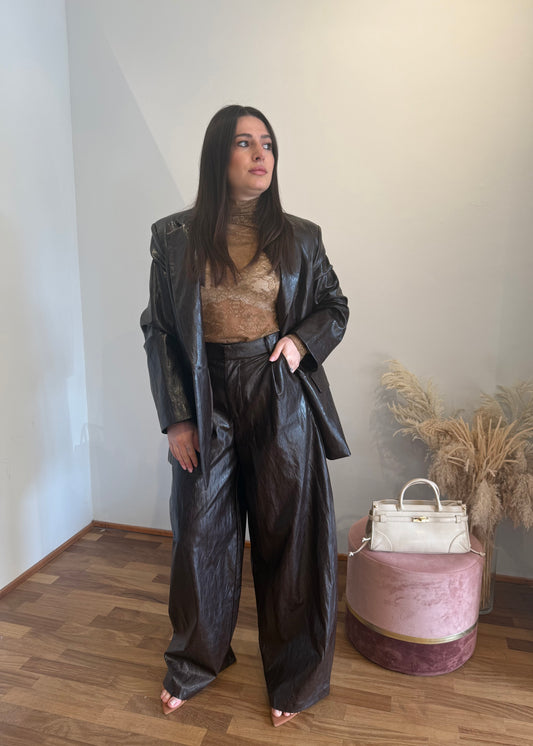 Pantalone Ecopelle Texture Cioccolato - LUMINA