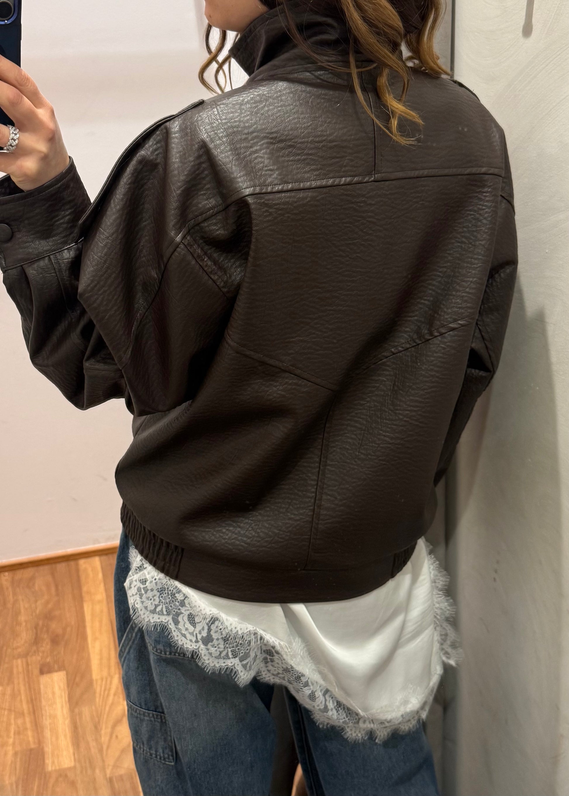 Bomber Ecopelle Martellata Moro - SUSY MIX