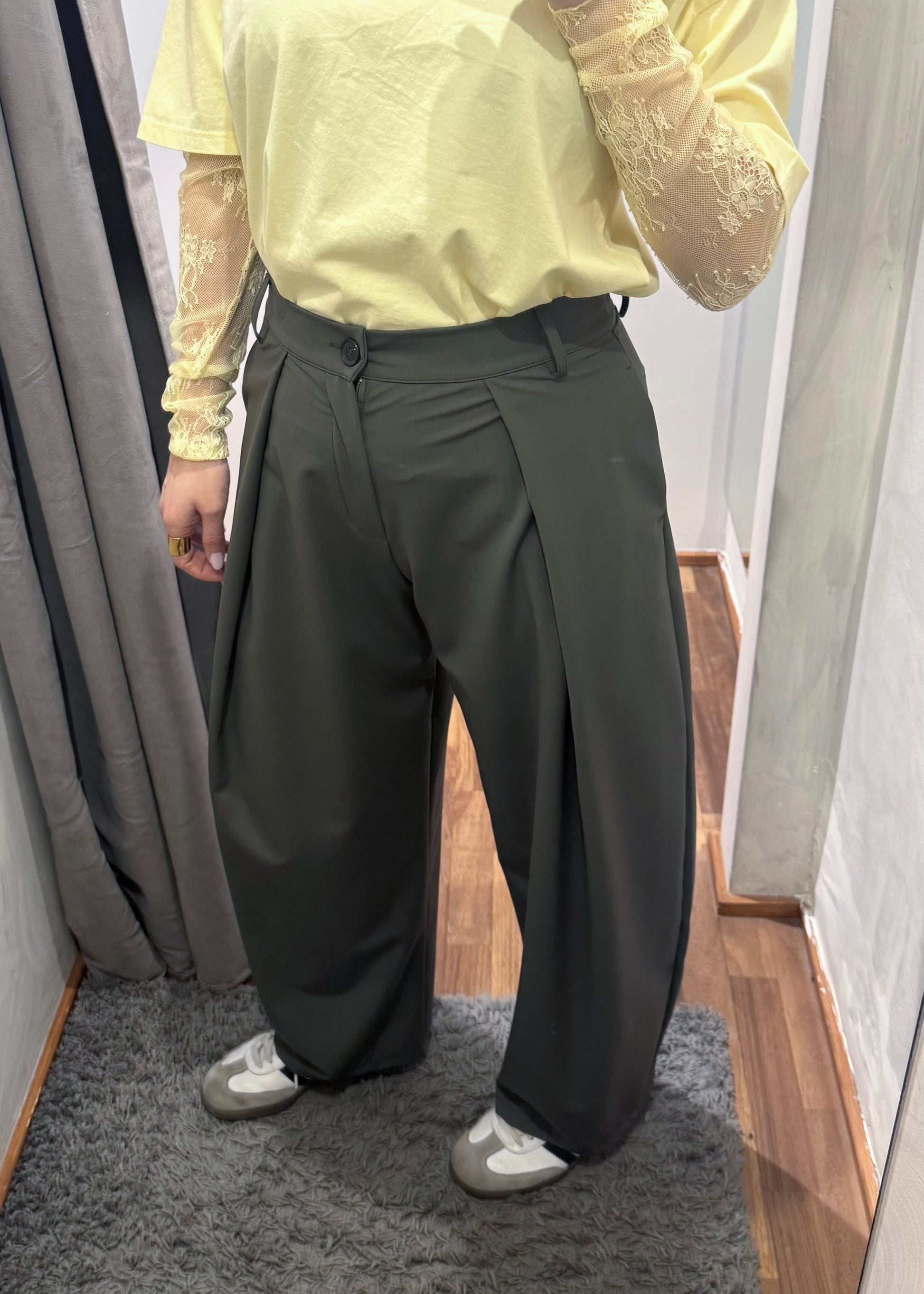 Pantalone Ovetto con Pinces Verde Militare - SUSY MIX