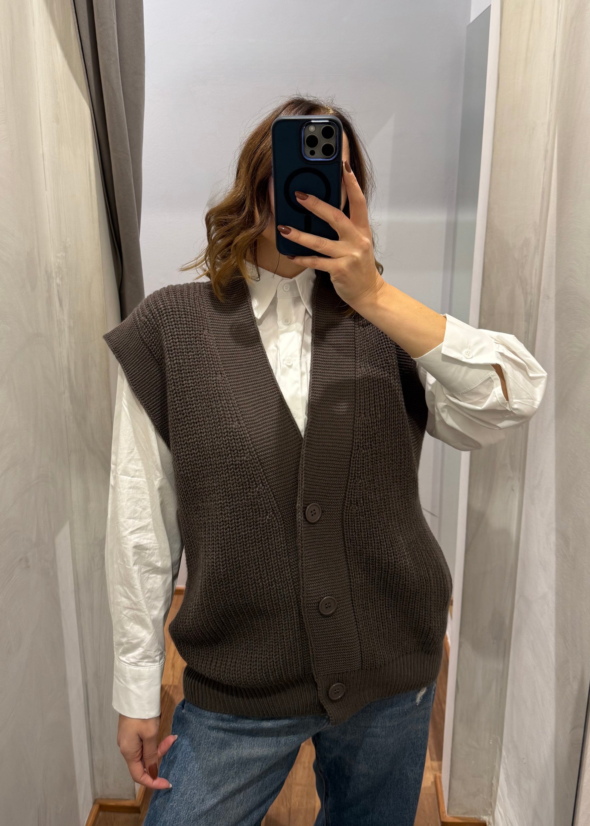 Gilet oversize in maglia a coste Susy Mix, con bottoni.