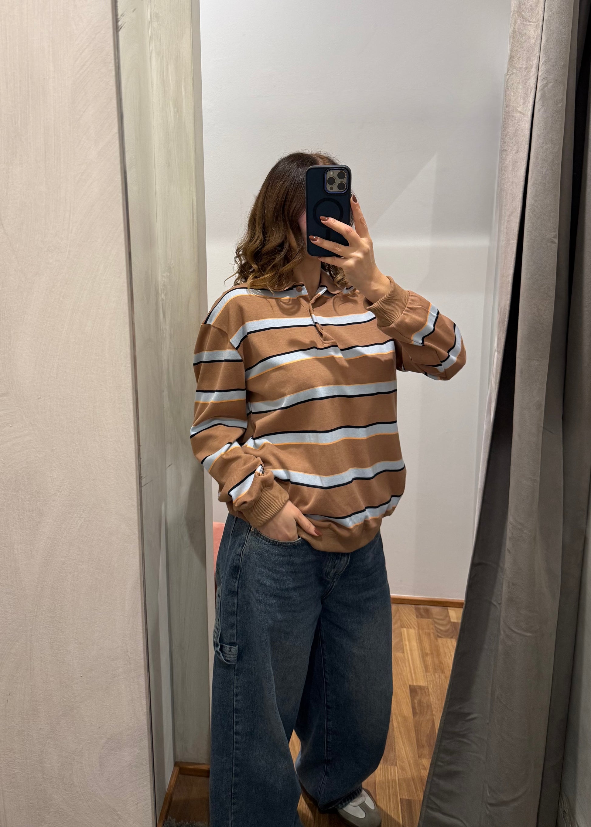 Polo a Righe Cammello